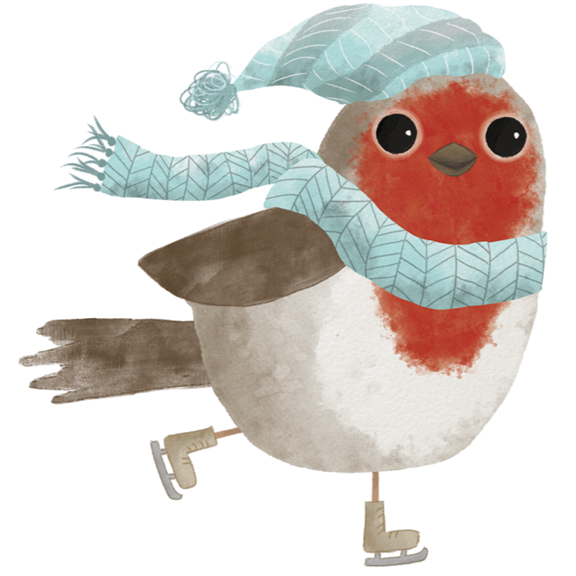 We wanted the experience to feel gentle and beautiful. Like the feeling when snow has recently fallen. We commissioned a children's book illustrator, Final drawing of Robin by Jennifer Ledgerwood, who used watercolour washes and hand-drawn illustrations to create all the visual assets — including Robin, the robin redbreast, who became the heart of the trail.