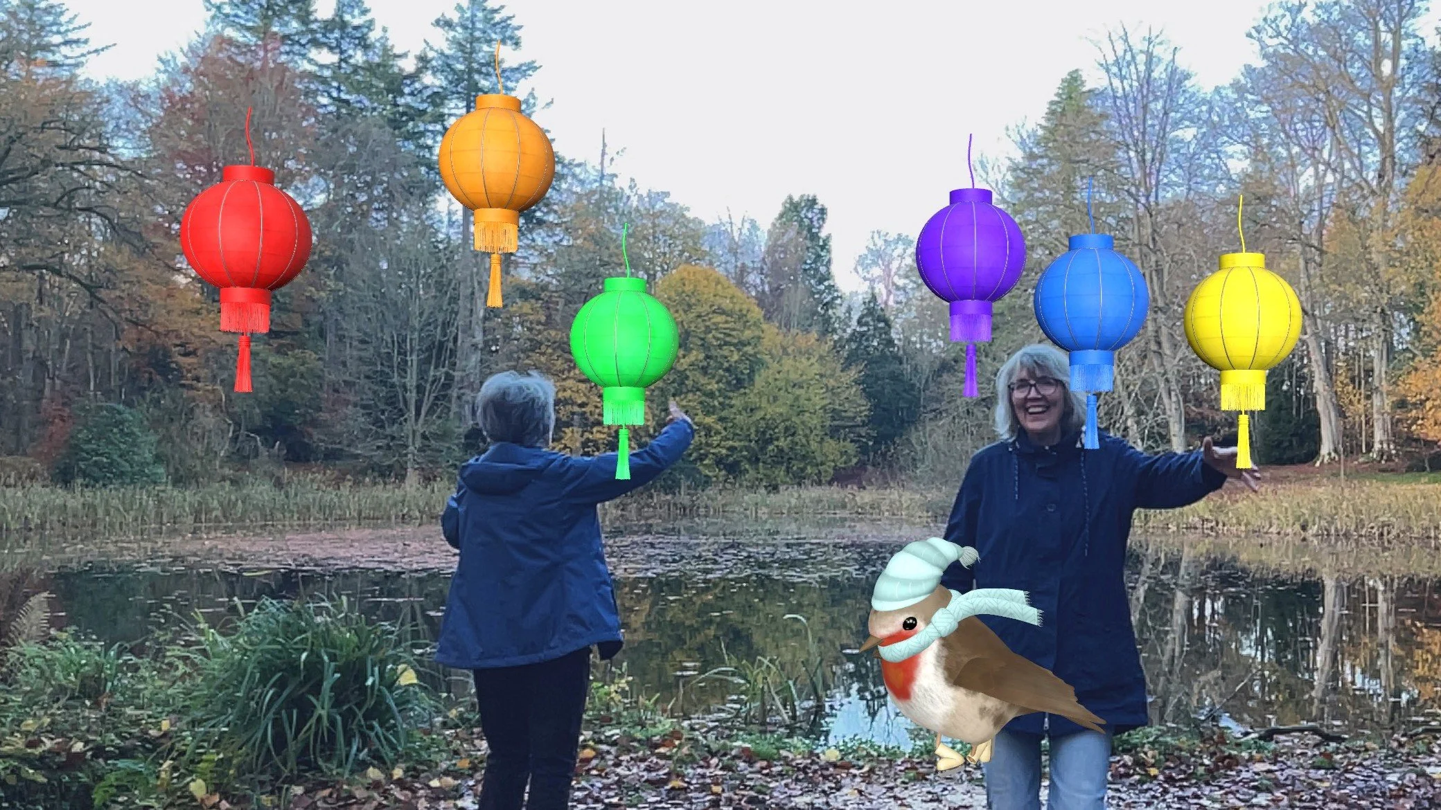 Dancing with AR Robin, Robin's Lantern Quest, National Trust Wallington, Northumberland.